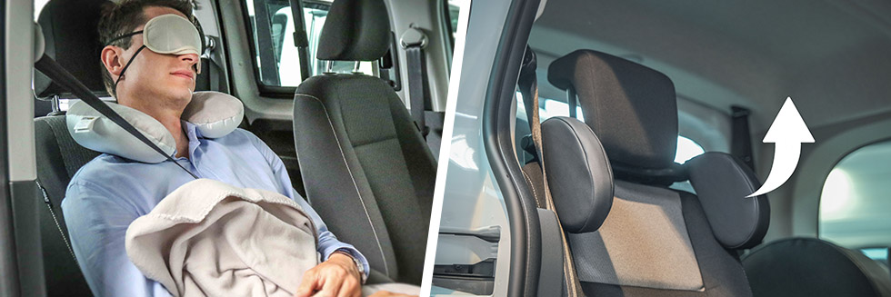 - Le repose-tête réglable : spécialement conçu pour la voiture, s’installe facilement sur les tiges de l’appui-tête. Offre un maintien de chaque côté, réglable en hauteur pour s’adapter à la position de votre tête.
