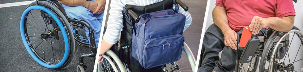 - Le sac pour fauteuil roulant : permet d’emporter tout ce dont vous avez besoin avec vous et s’accroche facilement au dossier du fauteuil roulant. Autre modèle en noir ici.