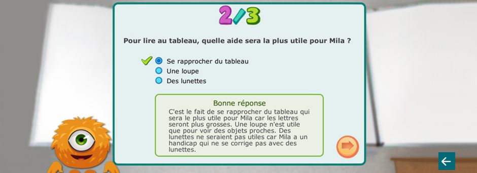A la fin des missions, un test de validation des connaissances acquises vient clôturer le jeu. Voilà un bon moyen de sensibiliser les plus jeunes ! Pour télécharger gratuitement Vis ma vue, vous pouvez cliquer ici.