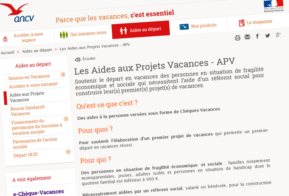 Ensuite, inutile de contacter directement l’ANCV. Son action est mise en œuvre par des partenaires, grandes associations nationales ou structures locales qui sont directement en contact avec le public concerné. Pour connaître la liste des partenaires à contacter, cliquez ici.