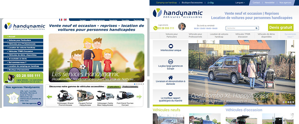 Seulement, un site internet c’est comme tout, ça vieillit ! Et c’est le cas aussi bien sur le plan technique que visuel. Alors l’équipe marketing d’Handynamic a travaillé de longs mois pour élaborer une toute nouvelle version, que vous avez peut-être déjà pu visiter si vous êtes actuellement en quête d’une nouvelle voiture accessible.