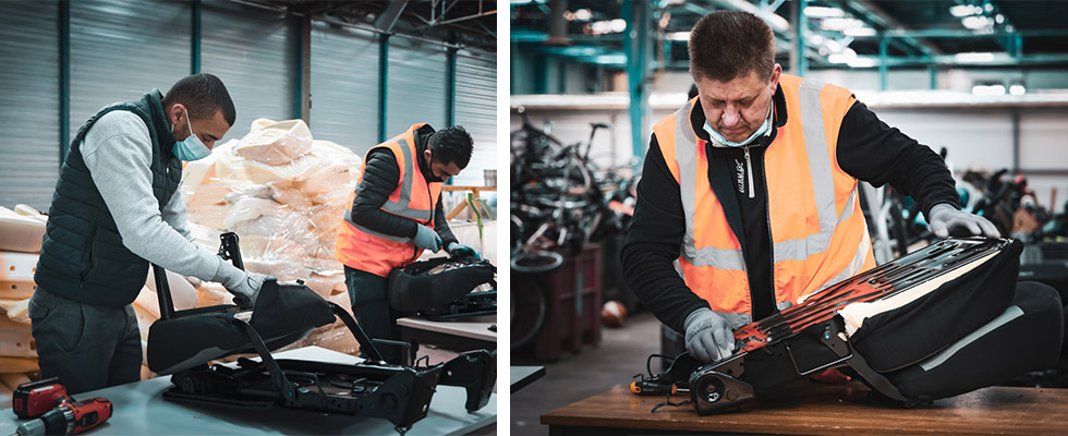 On arrive à revaloriser une majeure partie des pièces récupérées par la vente. Dans ces cas-là, les pièces automobiles resservent comme telles, il n’y a pas de transformation. Mais il y a une autre partie difficile à revendre comme telles car elles n’ont plus aucune valeur sur le marché, c’est le cas des sièges de Partner notamment. On en a récupérés plus de 400 cette année, ce qui représente un sacré volume et il était inconcevable pour nous de les jeter. C’est la mission première de Ouikeep de ne pas jeter et de trouver une solution !