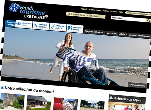 Handitourisme Bretagne, tel est le nom qui a été donné à ce site Internet édité par le Comité régional du tourisme de Bretagne. L’initiative est intéressante puisqu’elle vient des collectivités locales bretonnes qui ont semble-t-il bien compris que le tourisme se conjugue aussi avec handicap.