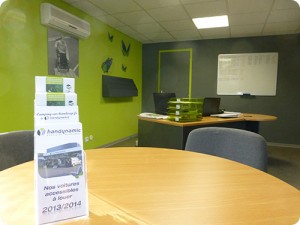Nous avons quand même prévu un showroom pour les jours de mauvais temps, qui vous permet de découvrir et d’essayer deux voitures aménagées handicap. Un espace vous est ensuite réservé à proximité de nos bureaux afin de vous recevoir confortablement et vous laisser le temps d’étudier votre projet de voiture adaptée. Précisons quand même que l’ensemble du bâtiment est accessible aux personnes en fauteuil roulant …