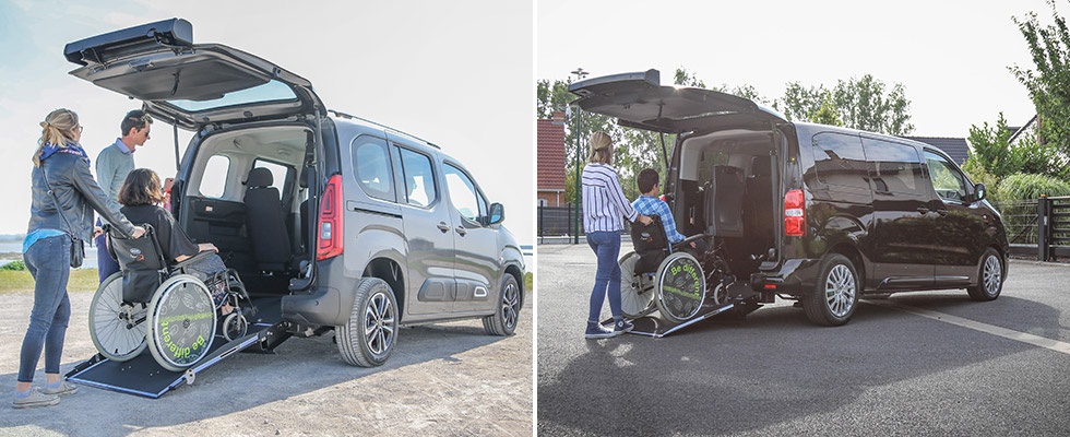 Le Nouveau Berlingo, dernier ludospace Citroën, avec un aménagement Xtra HappyAccess qui offre un décaissement arrière ultra accessible. La convivialité de voyage est aussi préservée grâce à ses deux sièges arrière placés de part et d’autre de l’emplacement pour le passager en fauteuil roulant.