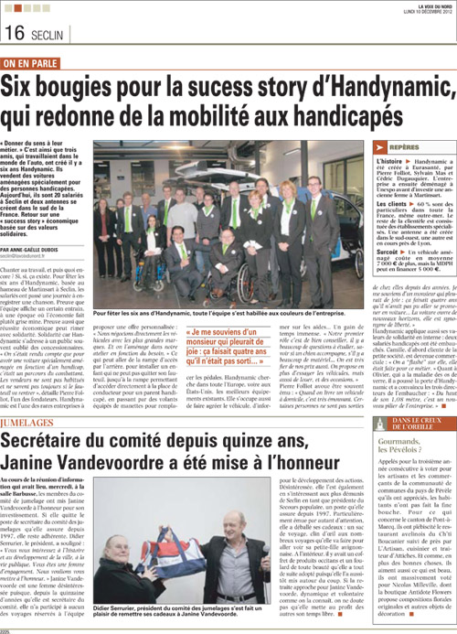 Le 29 novembre dernier était donc synonyme d’anniversaire chez Handynamic, et c’est avec grand plaisir que nous vous avons accueilli pour souffler nos bougies. Le quotidien régional la Voix du Nord en relate un récit bien sympathique :