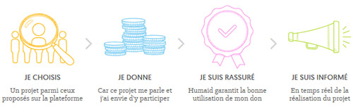 Humaid a vu le jour pour faire appel à la solidarité des gens et permettre à des familles de réaliser leur projet face à un besoin essentiel tel que l’achat d’un fauteuil roulant ou d’un véhicule accessible, la réalisation d’une opération, l’aménagement du domicile, et bien d’autres exemples. Le principe est simple, comme sur de nombreux sites de financement participatif, vous sélectionnez le projet auquel vous souhaitez contribuer, vous effectuez le paiement et vous êtes ensuite informé de la réalisation du projet en temps réel.