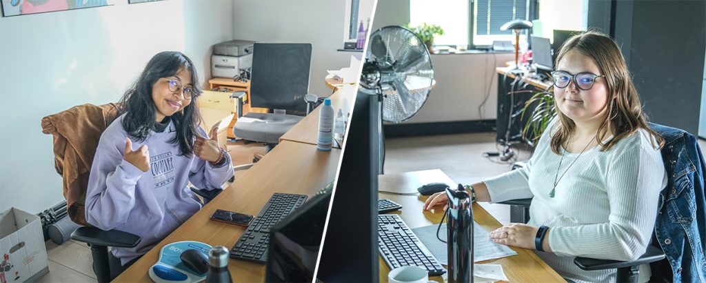Tiphanie : « J’ai 22 ans et je fais des études de design graphique (un bachelor en design graphique et numérique). Je suis en alternance, je suis arrivée le 23 septembre 2022 et je resterai 2 ans. »