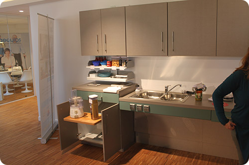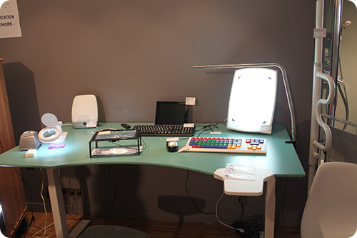 D’autres espaces sont dédiés à la basse vision ou à l’essai de déambulateurs et fauteuils roulants.