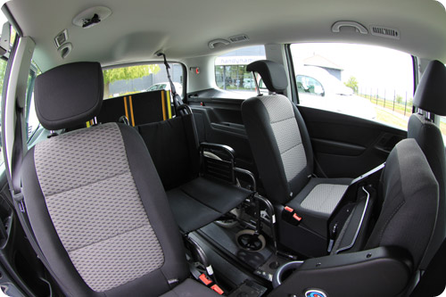 Le reproche le plus souvent adressé aux monospaces aménagés handicap portent sur le fait que le passager en fauteuil roulant se trouve loin des autres passagers. C’est effectivement le cas pour les voitures dont on conserve l’usage de la banquette passager, qui marque un peu une frontière entre l’avant et l’arrière. C’est ce point particulier que nous avons voulu traiter avec le Volkswagen Sharan aménagé handicap, qui dispose d’un décaissement de la partie arrière (abaissement du plancher) exceptionnellement long.