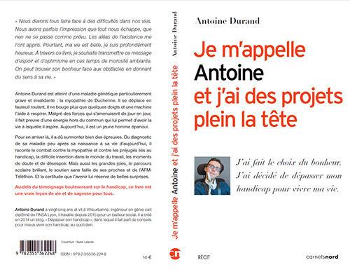 Puisqu’Antoine Durand est aussi un très bon rédacteur, il vient de publier son premier livre intitulé Je m’appelle Antoine et j’ai des projets plein la tête. Effectivement, il ne manque pas d’idées pour vivre pleinement, et c’est ce qui nous a touché chez Handynamic !