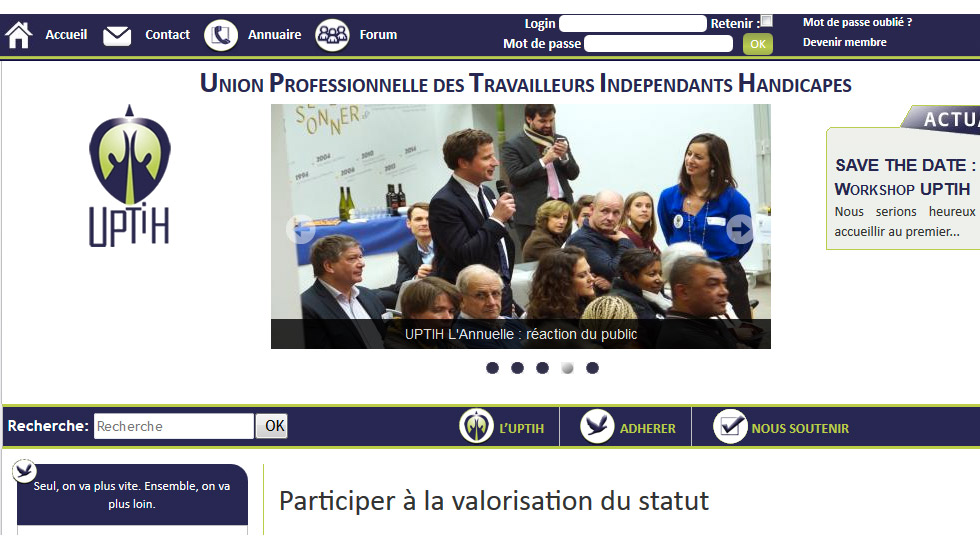 Tout d’abord, UPTIH signifie Union Professionnelle des Travailleurs Indépendants Handicapés. Il s’agit d’une association dynamique qui milite pour la valorisation et la reconnaissance à part entière du statut des travailleurs handicapés indépendants par le monde de l’entreprise et les organismes publics.