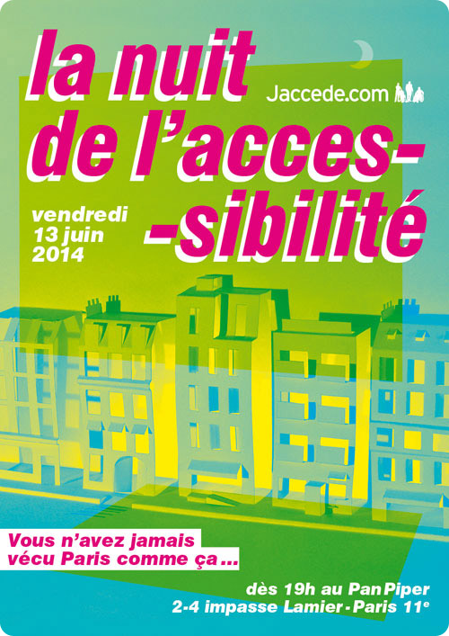 Comme son nom l’indique, la Nuit de l’Accessibilité se passe … la nuit ! En effet, Jaccede.com vous donne rendez-vous le 13 juin prochain de 19h à 1h pour recenser les lieux de la nuit accessibles à Paris, et partager de bons moments dans une ambiance musicale et artistique.