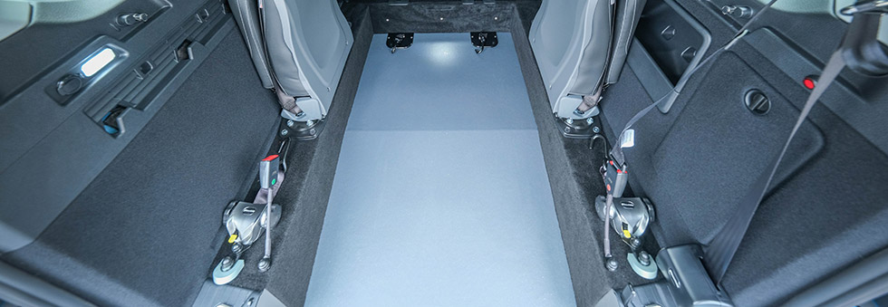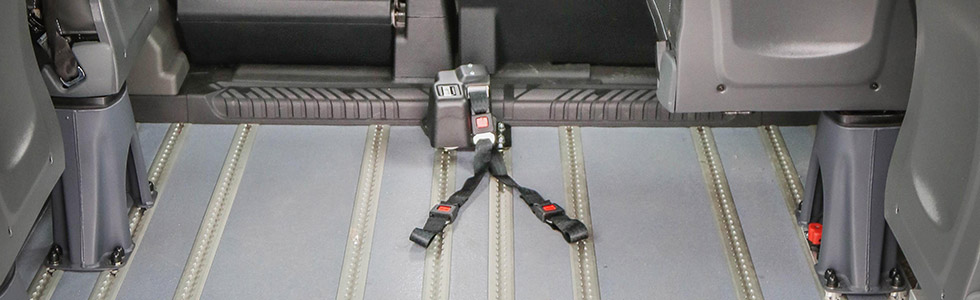 - Enrouleurs encastrés dans le plancher : chez Handynamic il s’agit de l’aménagement Triflex Easy, qui propose un plancher innovant qui intègre toute les sangles d’arrimage. Plus de risque de perte et l’installation se fait plus rapidement. Retrouvez la liste des véhicules disposant de cet aménagement révolutionnaire en cliquant ici.