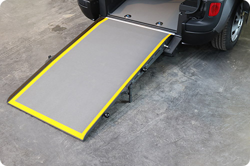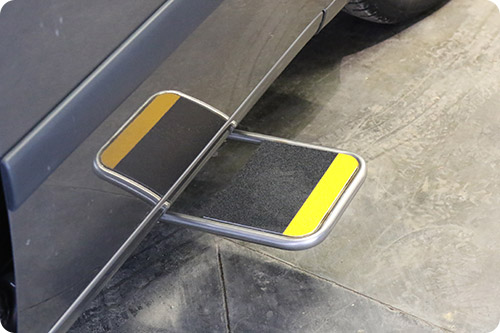 Les véhicules TPMR, voitures ou minibus, sont le plus souvent un peu rehaussés par rapport à une voiture classique. Cela engendre une marche élevée, qui peut poser quelques difficultés pour l’accès des personnes à mobilité réduite. La loi intervient également sur ce point en limitant la hauteur de marche à 32 cm, ce qui impose le plus souvent d’ajouter un marchepied qui doit être solidaire du véhicule, et lui aussi de couleur contrasté pour bien le distinguer dans l’obscurité. Handynamic a ainsi développé des marchepieds spécifiques pour chacun des modèles dédiés aux professionnels.