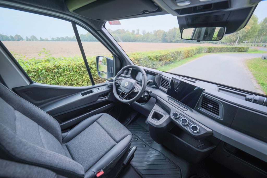 Le Nouveau Master E-Tech affiche une silhouette pensée pour réduire la traînée et améliorer l’autonomie. À l’intérieur, le poste de conduite a été entièrement repensé. L’ensemble crée un véritable espace de travail, confortable et intuitif pour les chauffeurs-accompagnateurs.