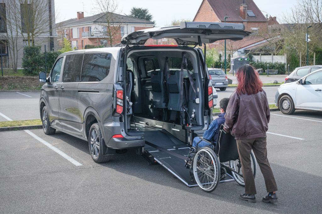 Le Ford Tourneo Custom Twin, grand monospace adapté pour transporter deux personnes en fauteuils roulants.
