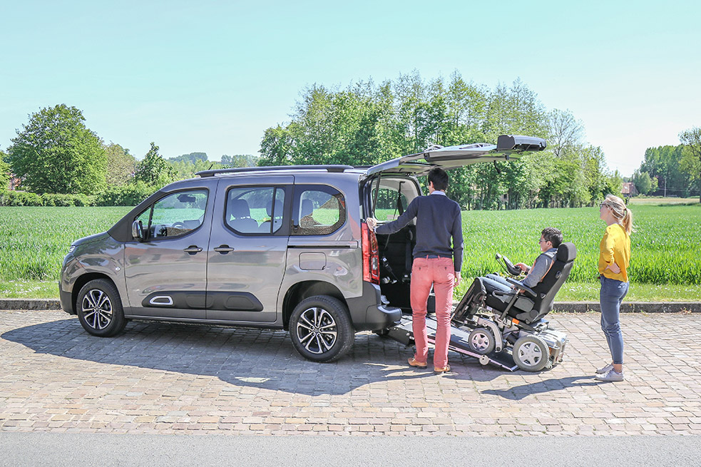 Côté aménagement, le Nouveau Berlingo intègre un large décaissement qui occupe une bonne partie de l’espace arrière de manière à côtoyer les places assises du rang 2. La banquette d’origine est remplacée par un à deux sièges (ou zéro si vous n’en avez pas l’utilité) amovibles, suffisamment étroits pour ne pas trop empiéter sur le décaissement. Le passager en situation de handicap peut ainsi s’avancer un maximum vers l’avant et profiter d’un voyage convivial, proches des autres occupants.