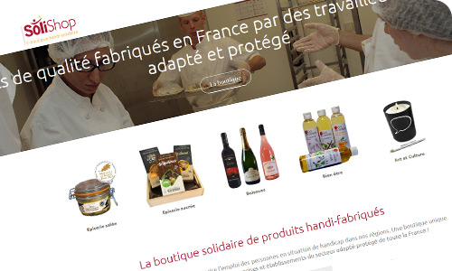 Les produits réalisés au sein de ces établissements ne demandent qu’à être commercialisés, et à l’heure du e-commerce, il est important d’être présent sur la toile ! Et puisque l’on a l’habitude de dire que l’union fait la force, l’idéal était de regrouper les différentes offres pour proposer le plus large choix possible aux acheteurs. C’est chose faite avec la boutique Solishop ! Il s’agit en réalité d’une place de marché, offrant la possibilité à chaque EA ou ESAT de proposer à la vente leurs productions. Le résultat est là, une plateforme de vente en ligne exclusivement dédiée aux produits issus du secteur protégé et adapté, avec un accès simple et direct à l’intégralité de l’offre.