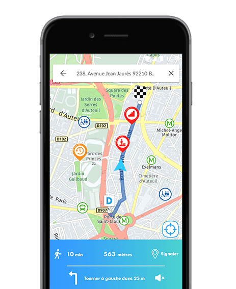 Vous pouvez masquer les obstacles s’il y en a, ou les lieux si vous le souhaitez, ou encore faire preuve de collaboration en signalant vous-même un obstacle ou un lieu (qu’il s’agisse de toilettes, de places de parking ou de divers lieux accessibles par exemple).