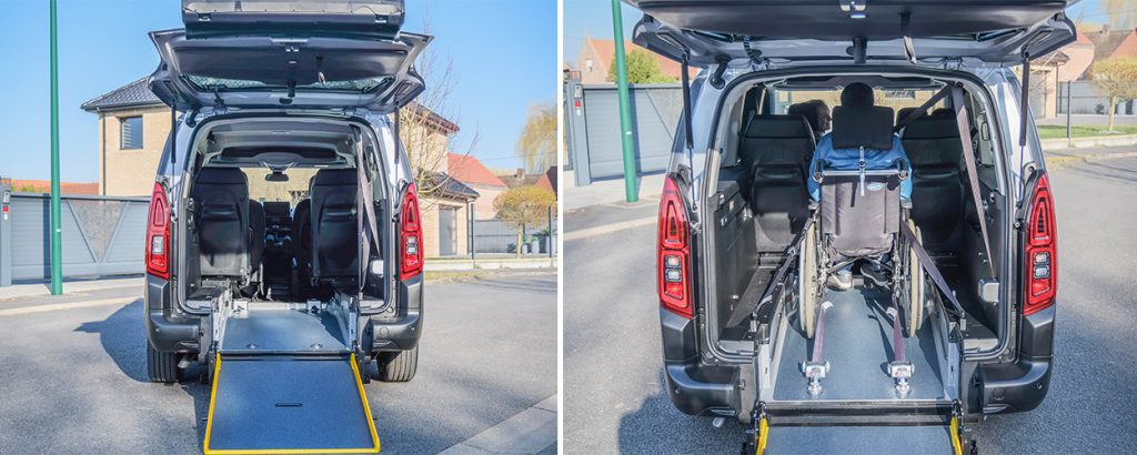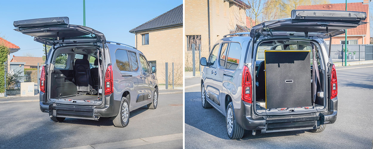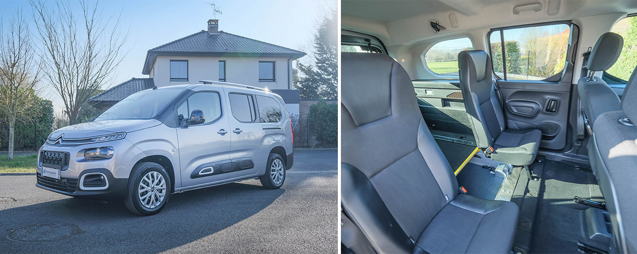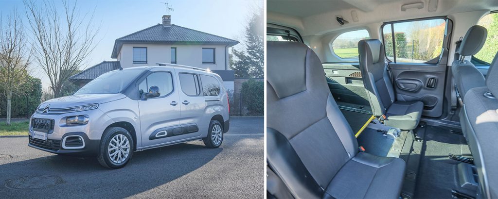 En soi, c’est plutôt simple : cet aménagement relativement épuré a été installé sur la version longue du Citroën Berlingo. Il propose deux sièges individuels en rang 2 (sujet déjà abordé dans les lignes du dessus) ainsi qu’un long décaissement droit aux dimensions généreuses, ce qui permet donc l’accès d’un proche ayant un fauteuil roulant électrique assez imposant par exemple.