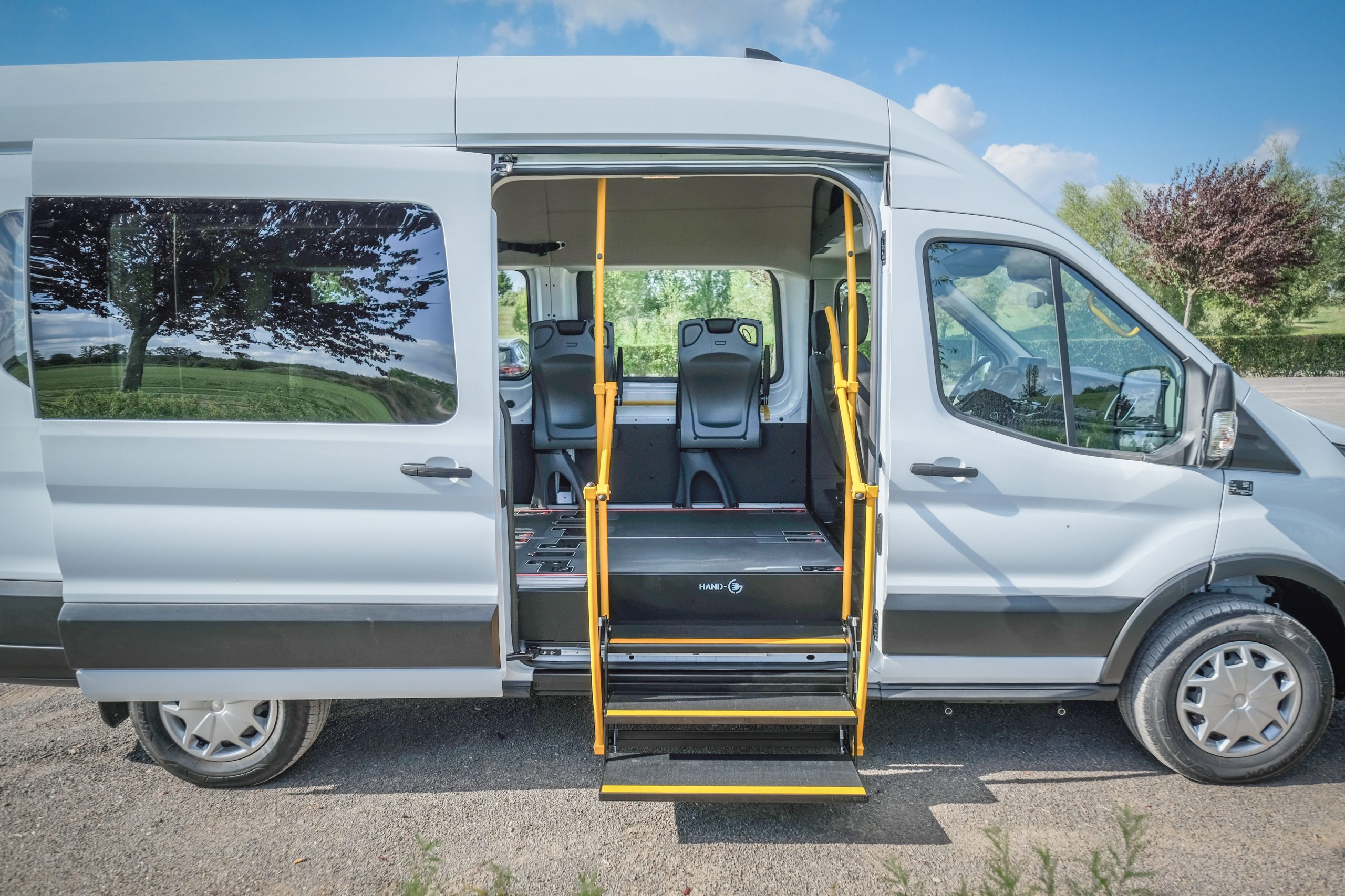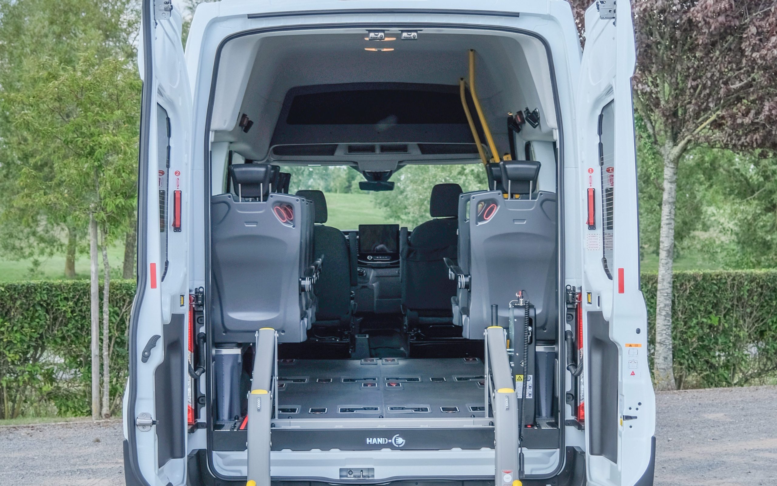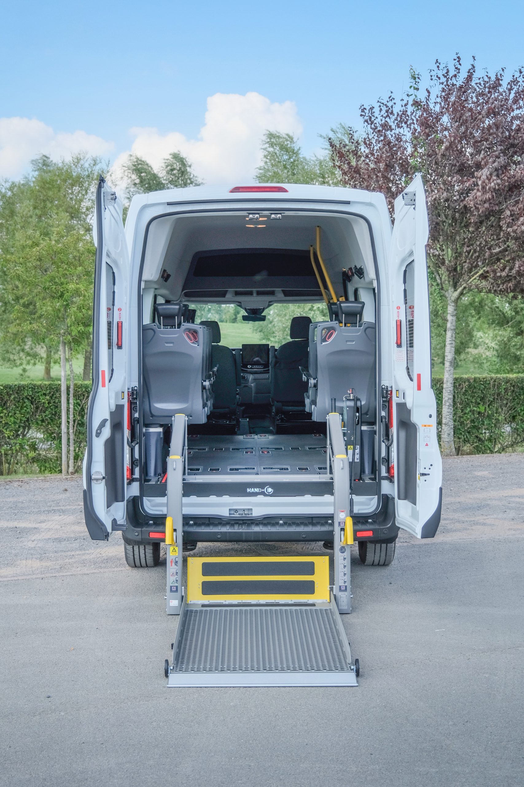 Disponible avec un hayon élévateur à télécommande pour un accès sans effort ou une rampe manuelle légère et simple à manipuler (que nous vous recommandons de choisir dans le cas d’un transport occasionnel de personnes à mobilité réduite).