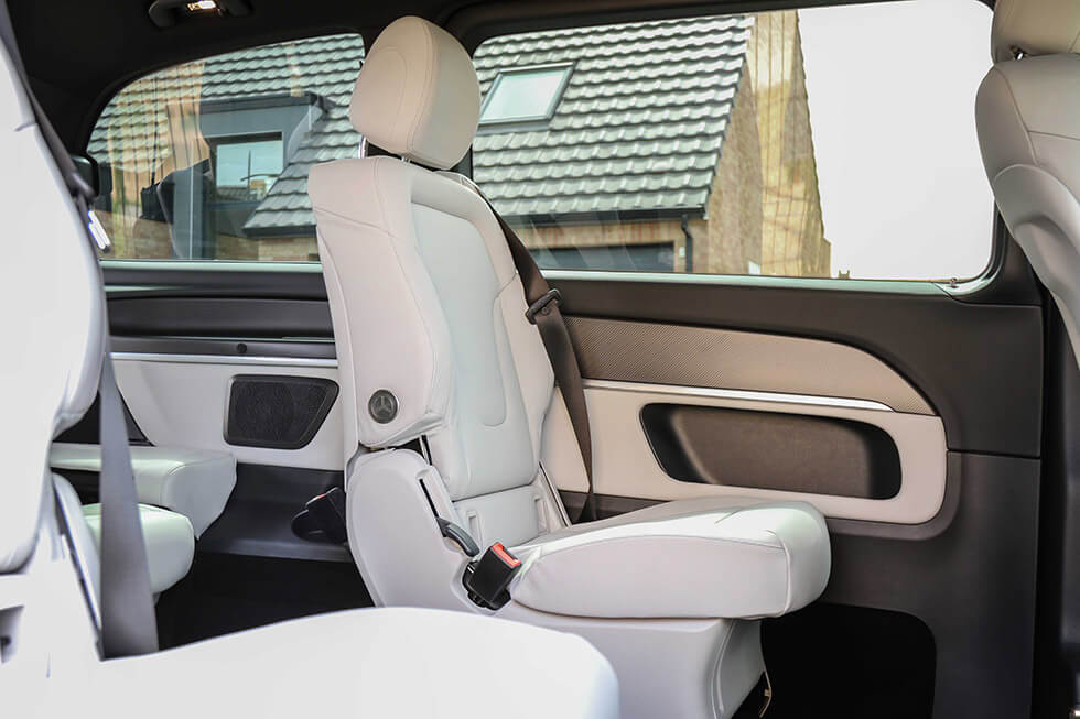 Les autres passagers ne sont pas en reste. Avec quatre places assises à l’arrière, de magnifiques sièges pullman en cuir, chacun profite de trajets dans le plus grand confort. L’ensemble des occupants du Mercedes Classe V profite d’un calme olympien, l’acoustique ayant été particulièrement soignée. Discuter avec le chauffeur ou les autres passagers ne nécessite pas de hausser la voix.