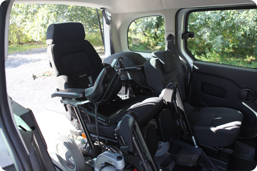 Comme prévu, l’accès se fait sans soucis grâce à ce fameux décaissement élargi, qui permet même de s’avancer très loin dans le véhicule. Le passager en fauteuil roulant se retrouve ainsi à côté du passager arrière, et très proche des occupants des places avant. La convivialité est au rendez-vous, c’est très appréciable.