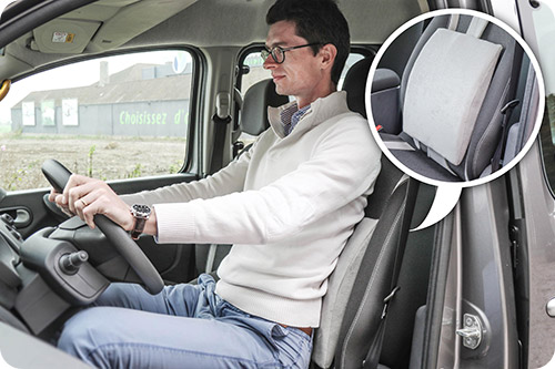 Le dossier des sièges de voiture est droit tandis que votre dos présente un creux, plus ou moins important, ce qui engendre un espace vide entre le dossier et le bas de votre dos. Cette position peut rapidement devenir la source de tensions musculaires et donc de douleurs dorsales fort désagréables.