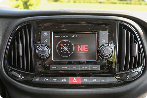 Ce Doblo se montre quand même très accessible et plutôt confortable, c’est l’impression générale qui ressort après plusieurs jours d’essais. Et cette voiture accessible a encore une autre corde à son arc. Proposé uniquement dans sa version diesel 120 cv et en finition Panorama, le Fiat Doblo Ecoline est ainsi équipé d’une climatisation automatique, d’un régulateur de vitesse, d’un écran tactile avec GPS, de la synchronisation Bluetooth avec votre téléphone, bref tous les équipements que vous attendez d’une voiture moderne.