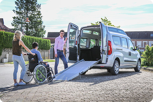 Dernier arrivé dans la gamme Handynamic, le Fiat Doblo XL Ecoline SimplyAccess est une proposition très intéressante. Il s’adresse avant tout à un public familial, puisqu’il propose 5 places assises ou 4 places assises et une place pour un passager en fauteuil roulant. Il diffère principalement des autres voitures accessibles par le fait que son plancher n’est pas « décaissé ». Vous vous demandez peut-être comment il est alors possible de faire entrer une personne à mobilité réduite ?