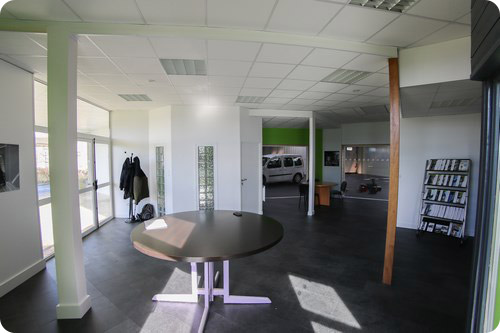 Chez Handynamic, nous accordons une grande importance à l’accueil de nos clients et aux moments partagés. Il était donc primordial pour notre nouveau bâtiment de l’agence de Rennes d’adopter des couleurs et matériaux qui rendent l’expérience la plus agréable possible. Et puisque la vocation première de nos agences est de vous permettre d’essayer nos voitures accessibles, il était également nécessaire de prévoir un espace showroom suffisamment grand pour exposer plusieurs véhicules.